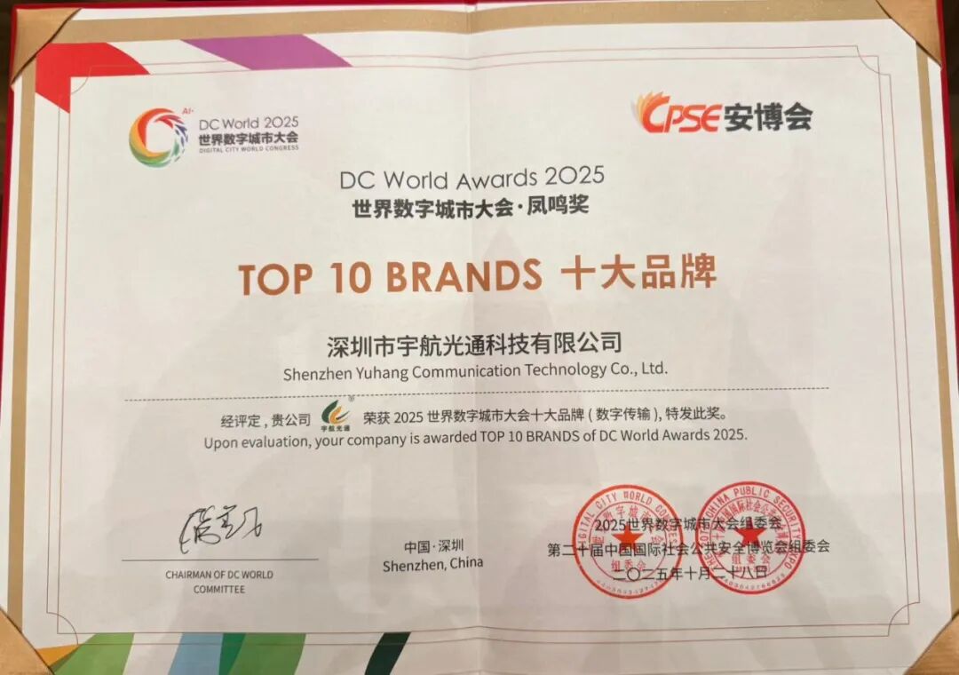 在第二十屆中國國際社會公共安全博覽會(CPSE安博會)暨第三屆世界數字城市大會上,宇航工業交換機憑借強勁的創新實力與穩固的品牌影響力,從眾多參選企業中脫穎而出,一舉斬獲“CPSE安博會金鼎獎”與“世界數字城市大會十大品牌”兩項行業大獎!