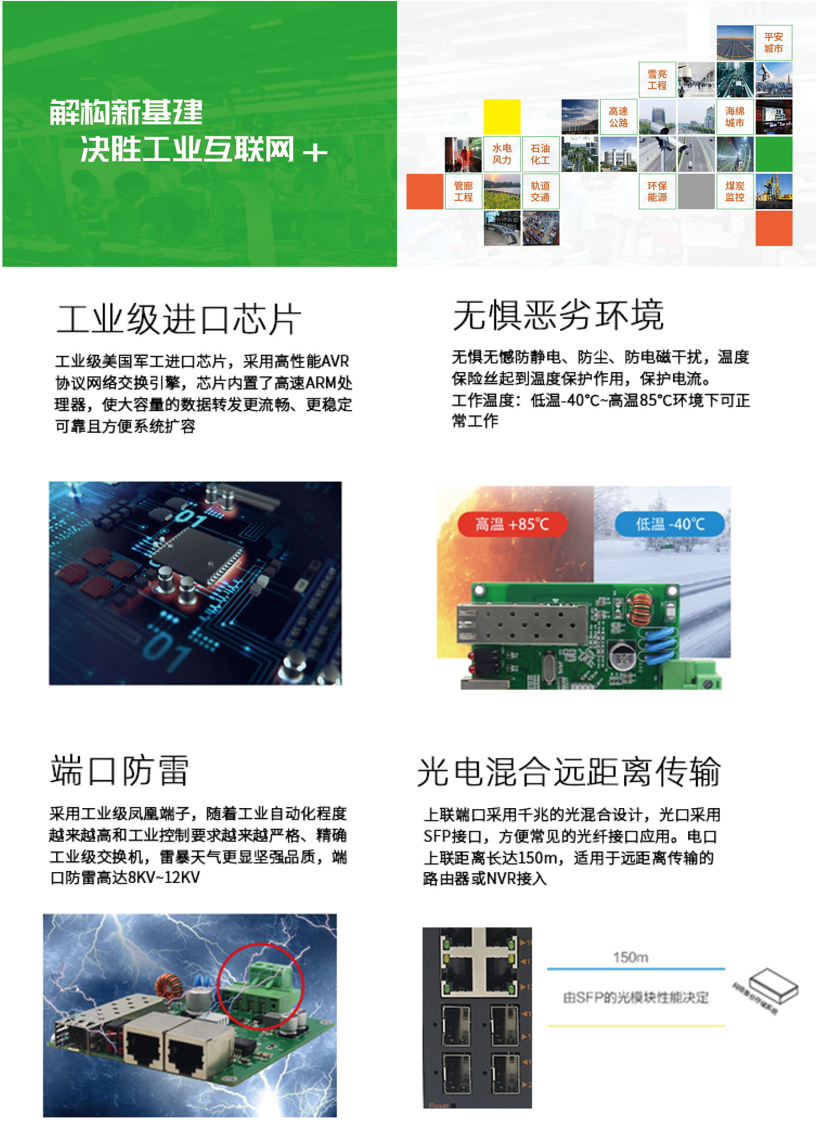 YH300-14G-SFP工業級以太網交換機,支持4個100Base-T/1000Base-TX電口和1個1000Base-X光口。產品符合FCC、CE、ROHS標準。YHD14G-SFP交換機具有-40℃~85℃的工作溫度,具有超強的堅固度能適應各種嚴苛環境,也可以非常方便的安置在空間緊湊的控制箱中。導軌的安裝特性、寬溫操作及擁有IP40防護等級的外殼及LED指示燈,使YHD14G-SFP成為一個即插即用的工業級設備,為用戶的以太網設備聯網提供可靠、便捷的解決方案。
