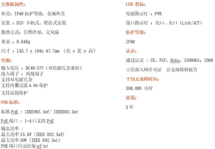 4路千兆POE電口+2路千兆FX光口工業(yè)級以太網(wǎng)POE交換機(jī),支持4個(gè)10/100/1000Base-TX電口和2個(gè)1000Base-X光口。產(chǎn)品符合FCC、CE、ROHS標(biāo)準(zhǔn)。RD24GP-SFP交換機(jī)具有-40℃~80℃的工作溫度,具有超強(qiáng)的堅(jiān)固度能適應(yīng)各種嚴(yán)苛環(huán)境,也可以非常方便的安置在空間緊湊的控制箱中。導(dǎo)軌的安裝特性、寬溫操作及擁有IP40防護(hù)等級的外殼及LED指示燈,使RD24GP-SFP成為一個(gè)即插即用的工業(yè)級設(shè)備,為用戶的以太網(wǎng)設(shè)備聯(lián)網(wǎng)提供可靠、便捷的解決方案。