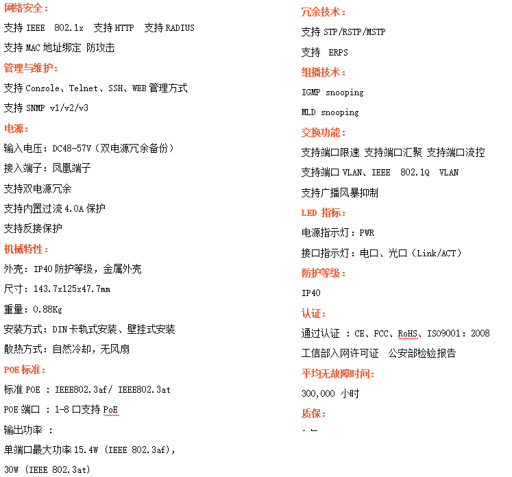 ●安全管理:支持ACL訪問(wèn)控制列表,支持802.1X