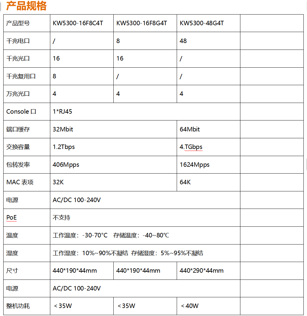 ?全新開發(fā)推出的KW5300系列全千兆網(wǎng)管寬溫交換機,采用新一代高性能硬件和軟件平臺,提供靈活、高性價比的全千兆接入和上行端口,支持完備的安全防護機制、完善的ACL/QoS策略和靈活的VLAN功能,易于管理維護,滿足用戶對于網(wǎng)絡設備易管理、高安全、高性能、低成本的組網(wǎng)需求,專為市政、銀行、教育、醫(yī)院、酒店、網(wǎng)吧、數(shù)據(jù)中心等室內項目以及戶外新基建項目定制系列,能滿足大規(guī)模的市場需求。