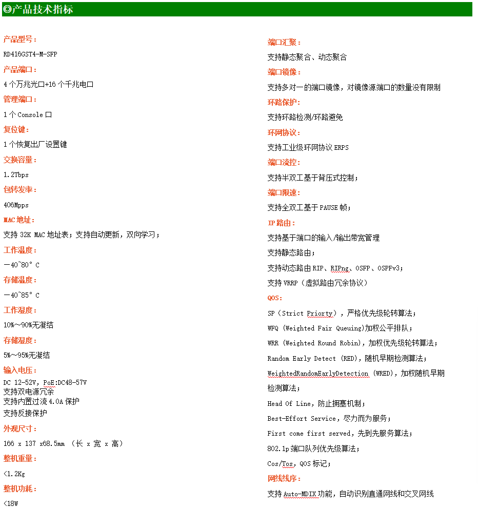 ●網絡冗余:支持STP/RSTP/MSTP,支持ERPS(自愈時間<20ms)
